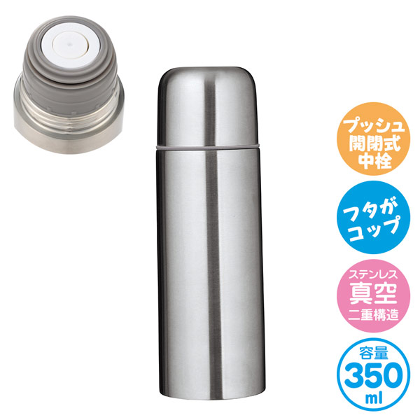 フタがコップになる、ワンプッシュ開閉式のシンプル&スタイリッシュなステンレスボトルです。