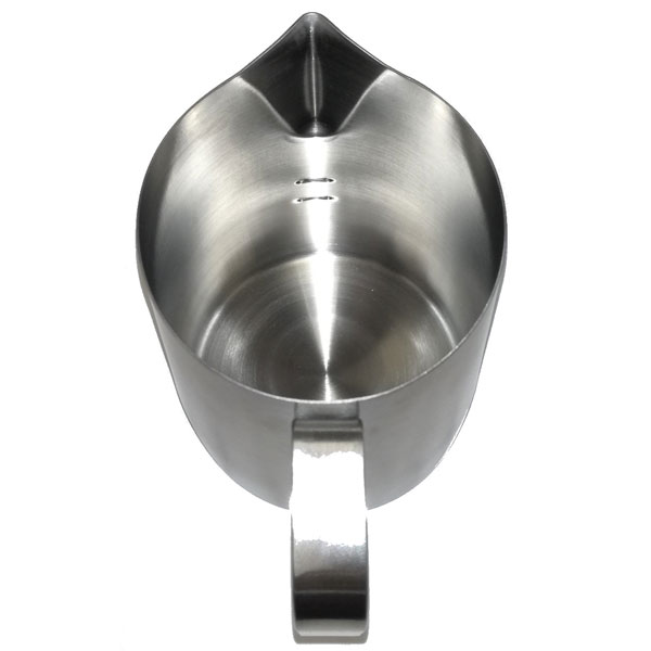 人気の細かい柄が描きやすいシャープスパウト仕様で、ラテアートに最適なピッチャーです。 上部が斜めにカットされていることで、ミルクの流量がコントロールしやすくなっています。