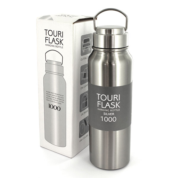 トゥーリ フラスク 1L シルバー 携帯に便利なハンドル付きステンレスマグボトル 保温 保冷 ステンレスボトル