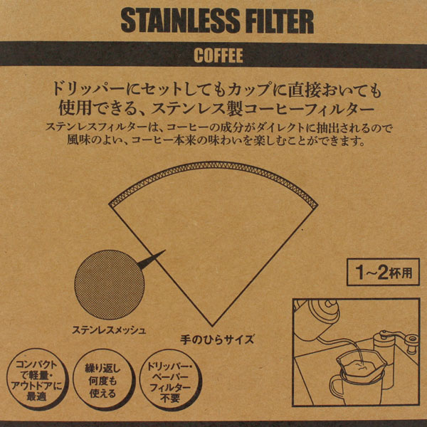 フォルダブル(折りたためる)ステンメッシュコーヒーフィルターです。 ドリッパーにセットしても、カップに直接置いても使用出来ます。 ステンレスフィルターは、コーヒー本来の味わいを楽しむことができます。