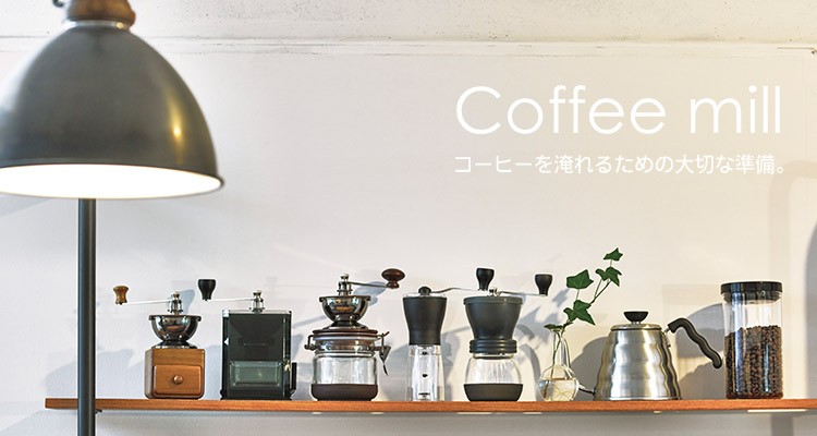 セラミック製の臼を使用した手挽きコーヒーミル。