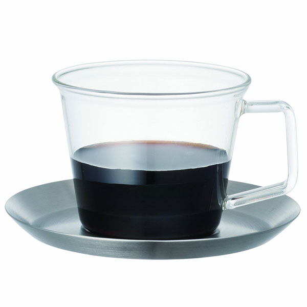 スタイリッシュな耐熱ガラスのコーヒーカップと