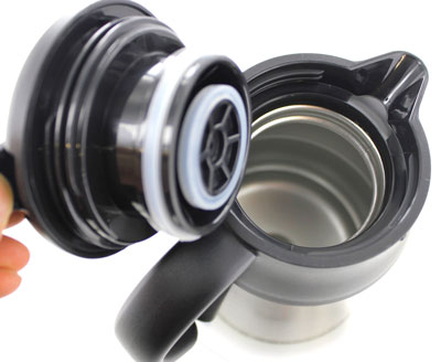 材質:本体:ステンレス鋼、口・ふた栓:ポリプロピレン、開閉レバー:ABS樹脂、シリコーンゴム