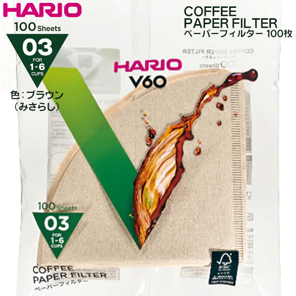 ハリオ V60 03用 円錐フィルター VCF-03-100M (みさらし・100枚入り)