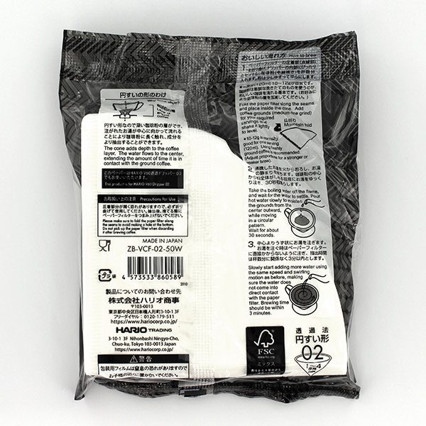 Zebrang ゼブラン ペーパーフィルター 50枚 02タイプ(1〜4杯用)ホワイト HARIO ハリオ