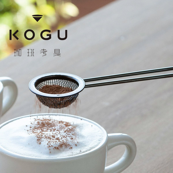 ココアの袋からすくって、そのままカップの上で振れるメッシュスプーンです。
