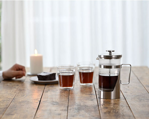 オールステンレス製のプレス式コーヒーメーカー。