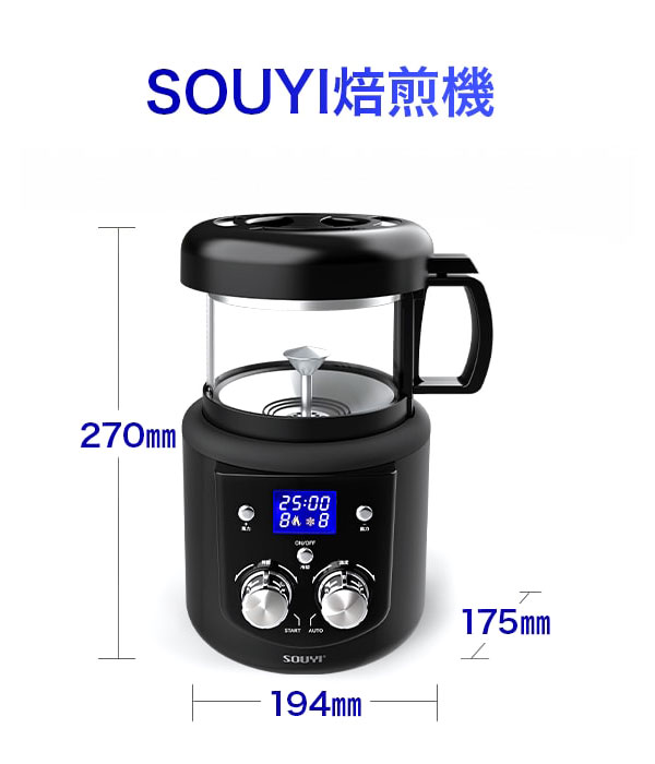 SOUYI 電動熱風式 コーヒー豆焙煎機(微調整機能付き)SY-121N 送料無料