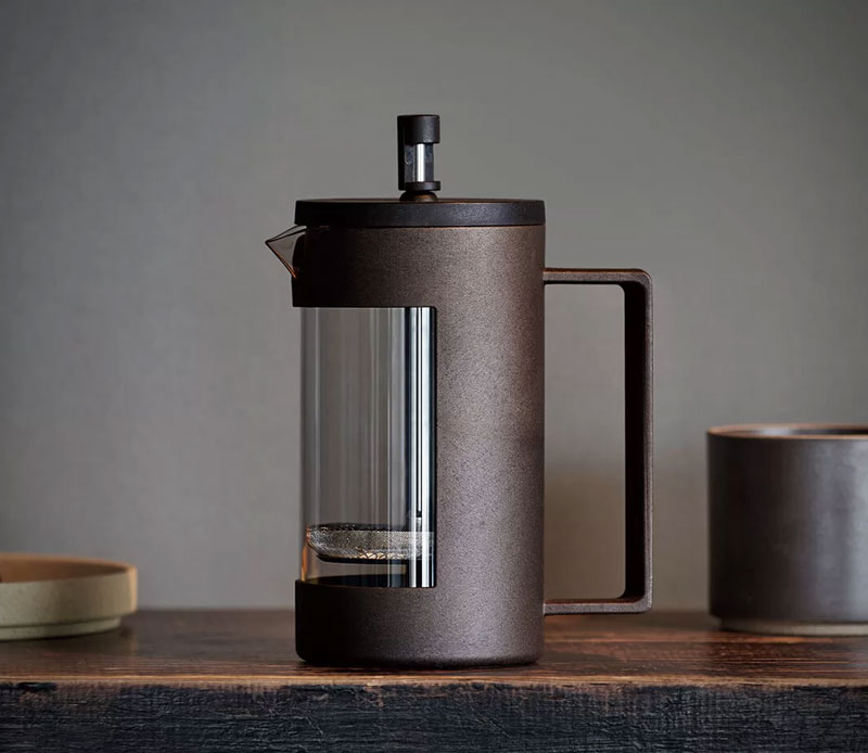 コーヒーの粉とお湯を入れるだけで、簡単に美味しいコーヒーが淹れられるフレンチプレス。蓋と外側にコーヒーかす素材を使用しプラスチックを削減したサステナブルな商品です。1回につき約3~4杯分のコーヒーが淹れられます。シックなカラーでインテリアとして置くだけでも見映えが良いです。フィルターは分解が可能なのでお手入れも簡単。ドリップの技術は不要で、どなたでも安定したコーヒー抽出ができるのが嬉しいポイントです。