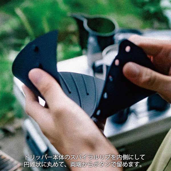 折りたたんでコンパクトに持ち運べるアウトドア用V60ドリッパーです。 外でも、お家で使用いただいているV60ドリッパーの使いごこちを再現できます。