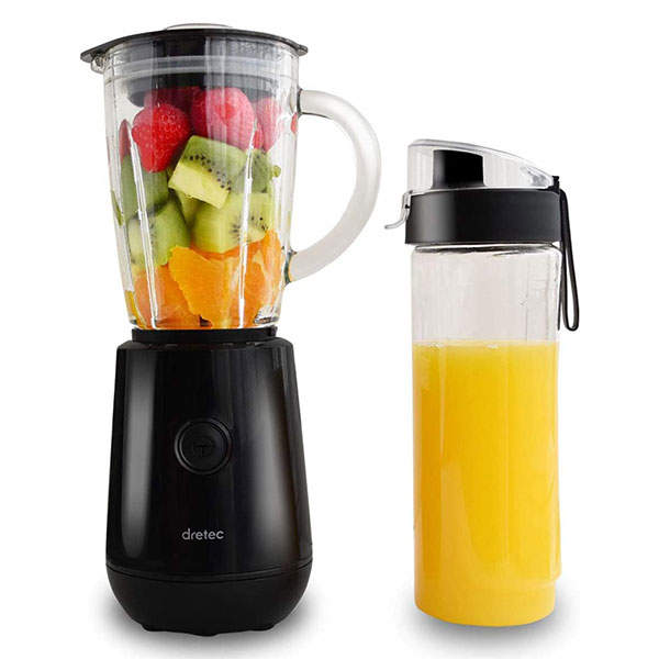 1ボタンで簡単操作できるドリテックの電動ミキサー(ブレンダー)です。 持ち手の付いたガラスカップと、逆さにしてブレンダーに設置する樹脂ボトルの2スタイルで用途に合わせてご使用いただけます。