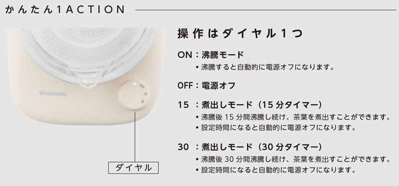 【シンプル操作で1台3役】 ダイヤル1つの簡単設定で、お茶に便利な3つの用途に使用できます。