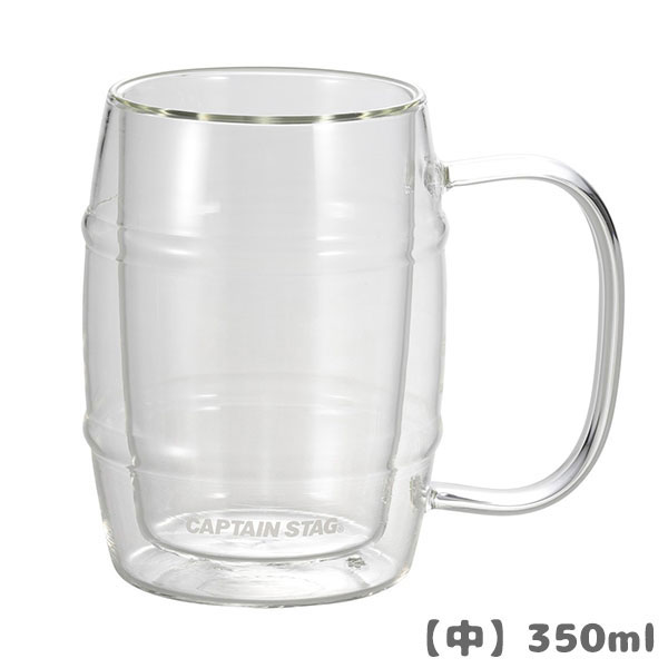 キャプテンスタッグ 樽ビアカップ 350ml 耐熱ダブルウォールグラス UW-2031