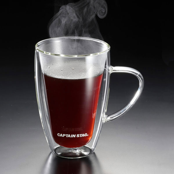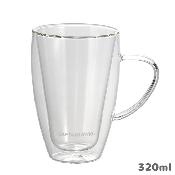キャプテンスタッグ ダブルウォールカップ 320ml UW-2033 二重構造耐熱ガラスカップ
