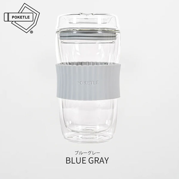 ポケトル ビードロ 330ml BLG ブルーグレー フタもガラスのダブルウォールタンブラー