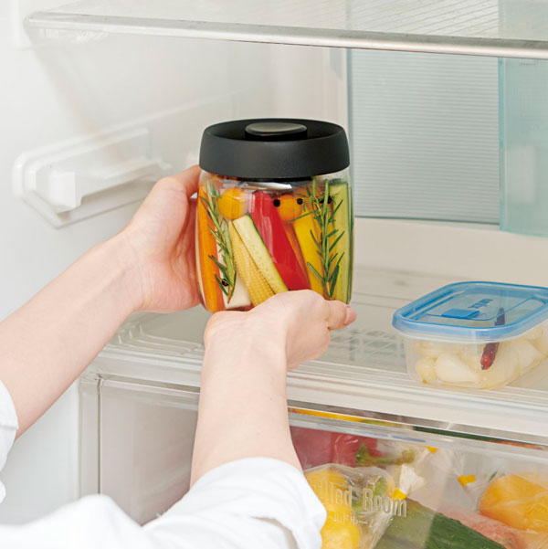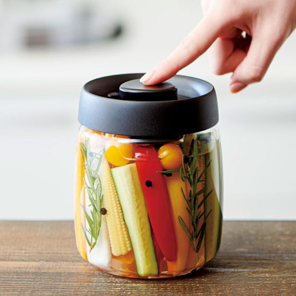 酸化・乾燥を防いで食材の保存にも使用できます。 ニオイもつきにくいガラス容器なので食品の長期保存にも。