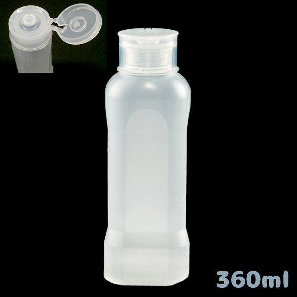はちみつが約500g、液体なら約360ml入る PP(ポリプロピレン)製の倒立ボトルです。