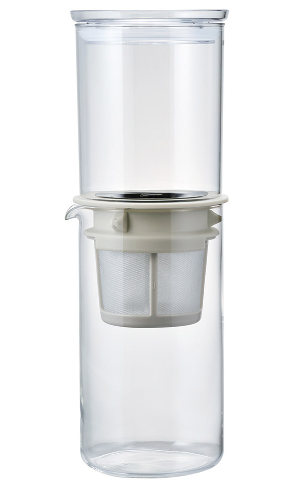 コーヒー粉を入れて、上ボールに水を注ぎ、45分〜1時間で水たてコーヒーができます。