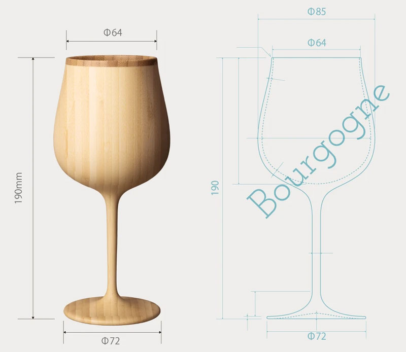 すっきりとした酸味と芳醇な香りをもつブルゴーニュワインをより楽しむには、余分な酸味を抑えながらすっと喉へ流れていくことが重要になります。 飲む際に顎を比較的傾ける必要があり、それによって酸味を感じる舌の外側を避け、自然と舌の上を軽快にワインが駆け抜けます。余分な酸味を抑え、より香りを保つことができるのが、このシルエットの大きなポイントです。