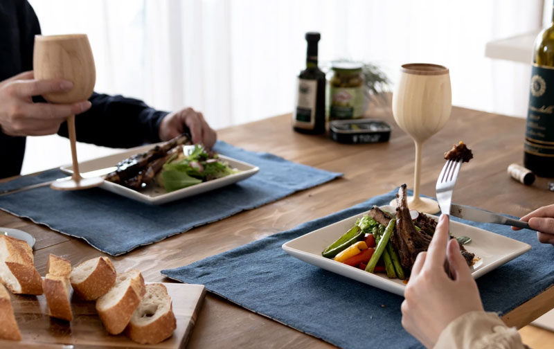 陶器やガラス製食器と同様に普段使いとしてご使用いただけるよう、竹の内部まで浸透させる独自開発コーティングを実施。(食品衛生法適合塗料)ワインやコーヒーなどの色移りや染み込みを防ぎます。