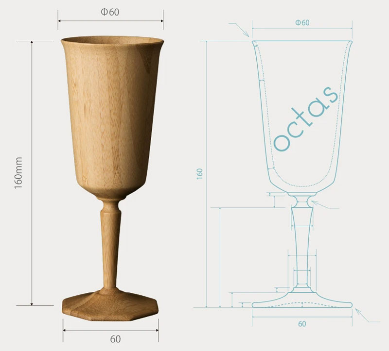 台座の形状から、八方位を意味する名前のグラス「オクタス」を天然素材の孟宗竹で作りました。