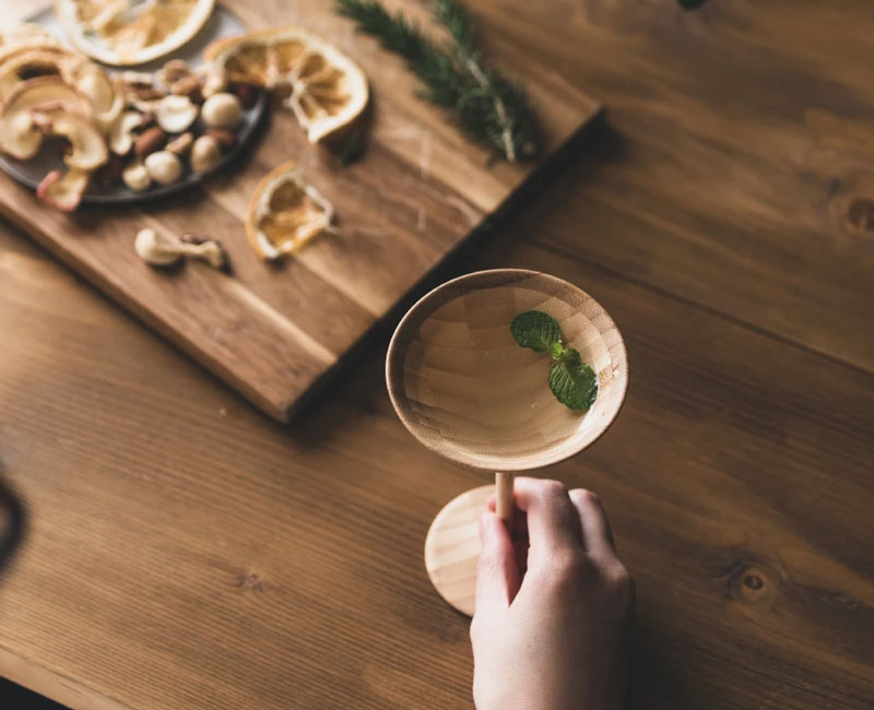 陶器やガラス製食器と同様に普段使いとしてご使用いただけるよう、竹の内部まで浸透させる独自開発コーティングを実施。(食品衛生法適合塗料)ワインやコーヒーなどの色移りや染み込みを防ぎます。