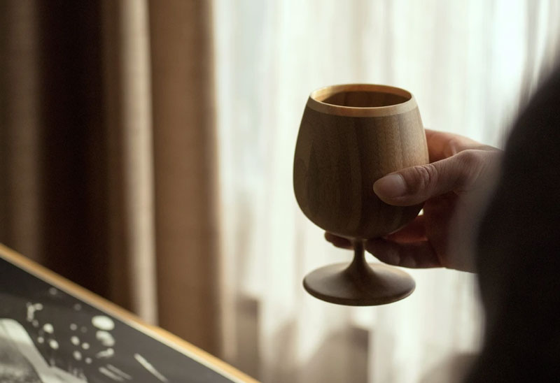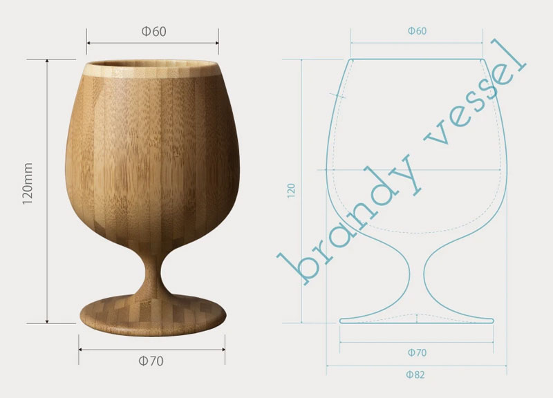 丸みをおびた可愛らしいシルエットのブランデーグラスを天然素材の孟宗竹で作りました。