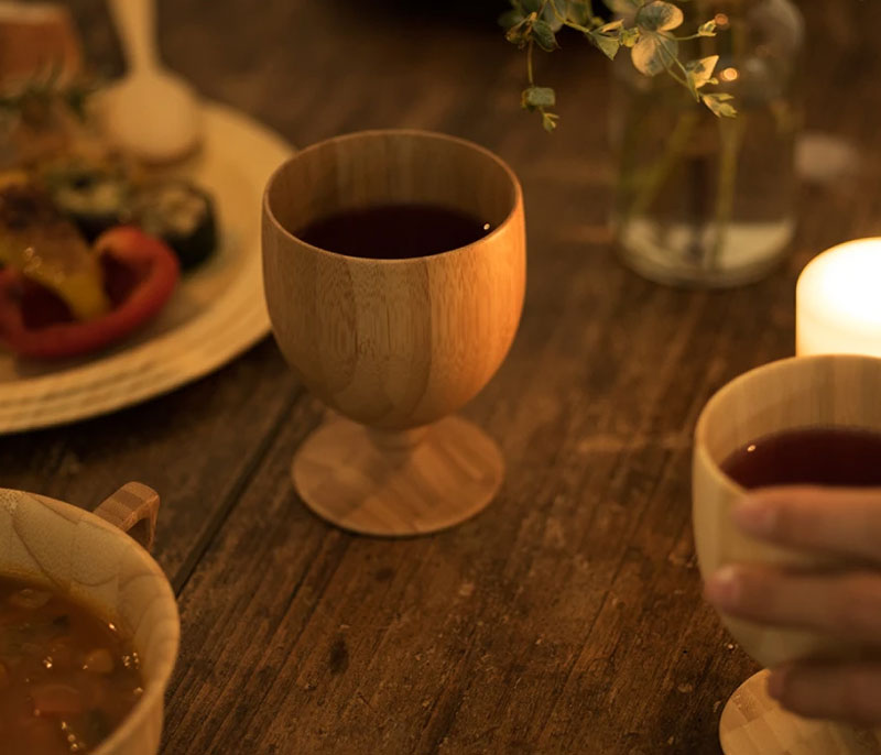 陶器やガラス製食器と同様に普段使いとしてご使用いただけるよう、竹の内部まで浸透させる独自開発コーティングを実施。(食品衛生法適合塗料)ワインやコーヒーなどの色移りや染み込みを防ぎます。