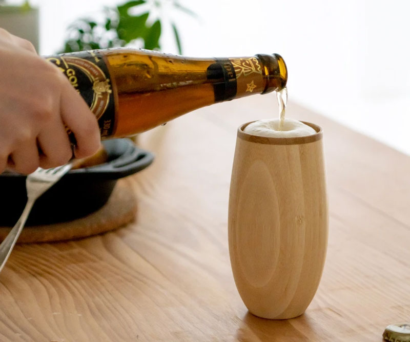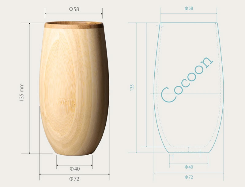 丸みをおびた_まゆ_をイメージした柔らかな印象のタンブラーを天然素材の孟宗竹で作りました。