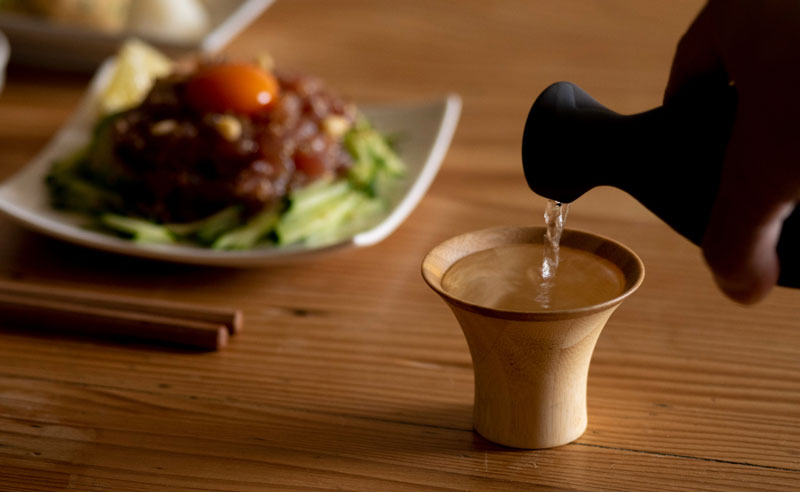 上部に向けて大きく広がる、ゆりの花をイメージしたラッパ型のおちょこ「YURI」。
