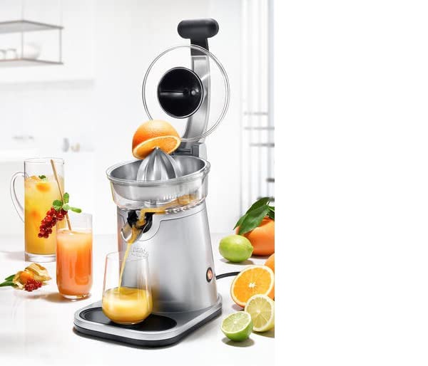 重厚なダイキャストアルミニウム製の大きなジューシングコーンにより、様々な大きさの柑橘系果実を、 ある程度の力が加えられると、自動的にモーターが始動し、ジューシングコーンが回転し、軽いプレス操作で簡単に、素早く100%果汁が作れます。