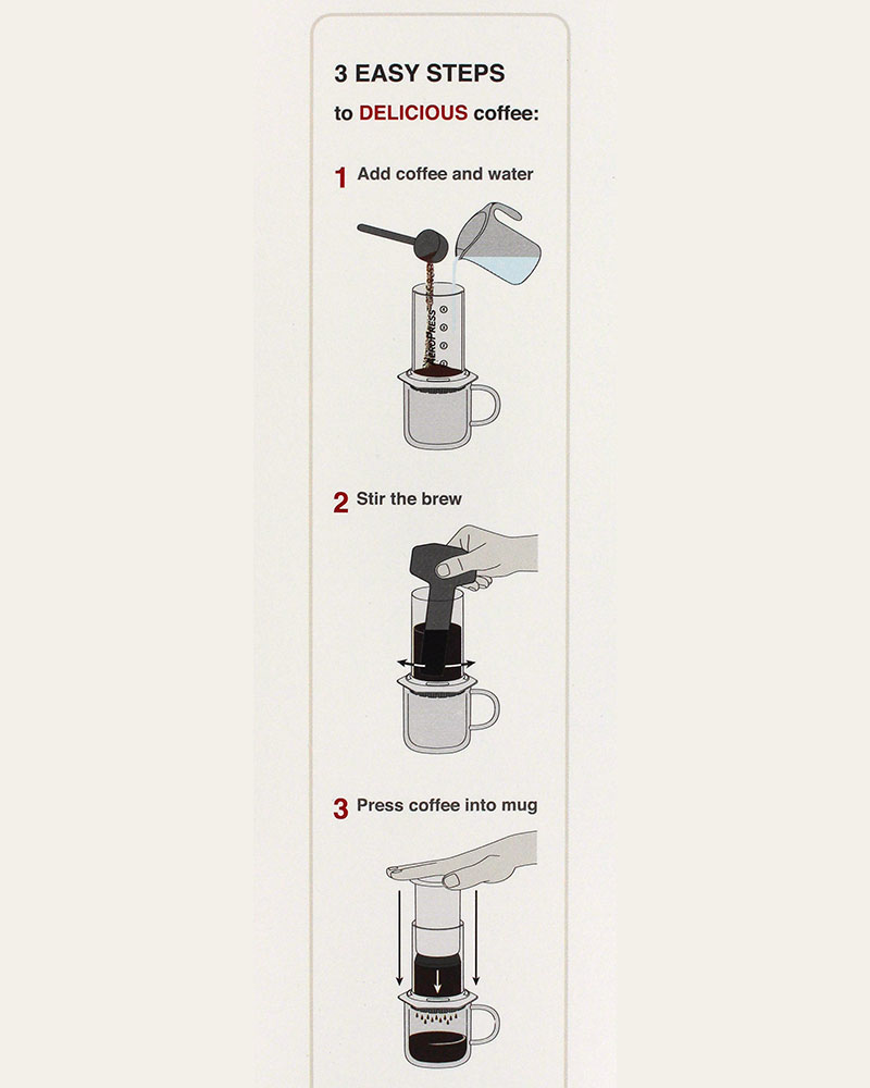 コーヒーの粉を入れてお湯を注いでプレス。約1分で、できあがります。