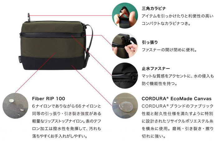 製品化するにあたってファブリックも見直しました。引っ張り・引き裂き強度があり、撥水性も高い、汚れも落ちやすいリップストップナイロンをベースに、地面に触れるボトム部分には耐摩耗性に優れたコーデュラエコメイドキャンバスを採用しています。