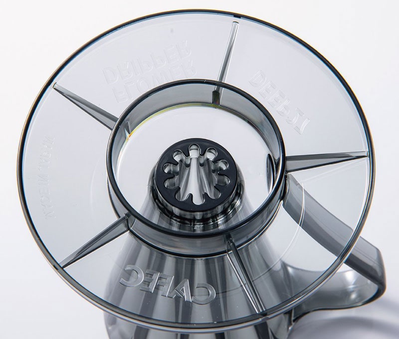 ドリッパーの台座にドーム状の曲線を付けたことで、ドリッパーとカップの距離を少し遠ざける工夫をし、カップにドリップされたコーヒーにペーパーの先が浸りにくいように設計しています! フラワードリッパーDEEP27は、トライタン樹脂製です。