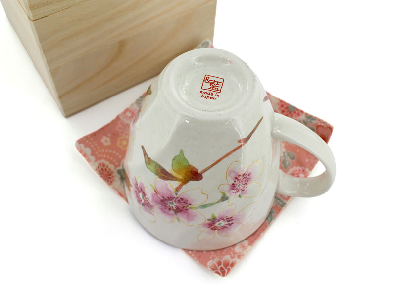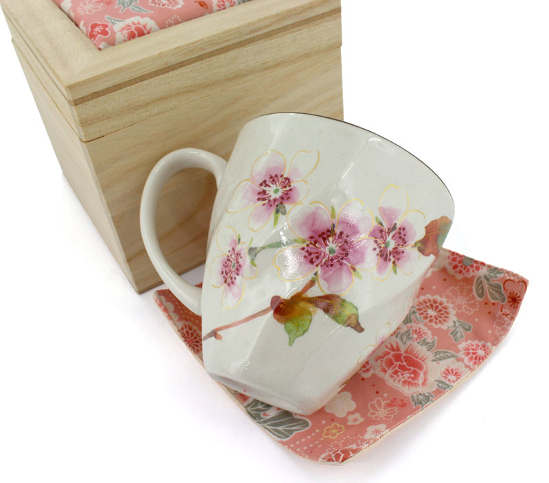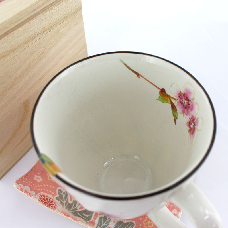 セラミック藍 花かぐら マグカップ 桜(さくら)290ml コースター&ちりめん木箱 22295