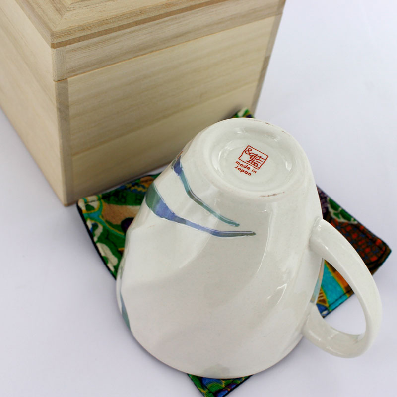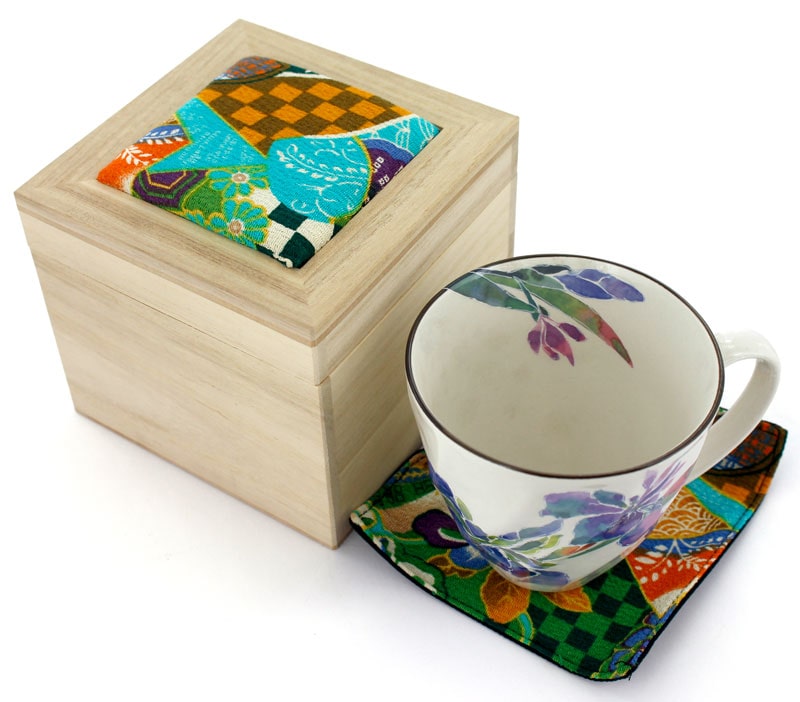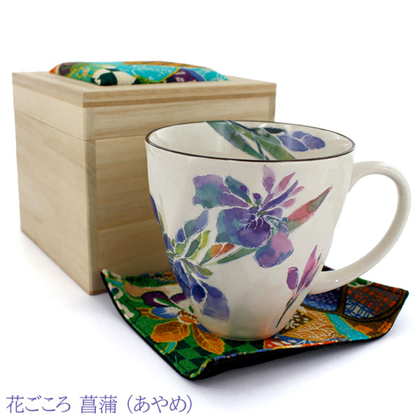 セラミック藍 花ごころ マグカップ 菖蒲(あやめ)290ml コースター&ちりめん木箱 22298
