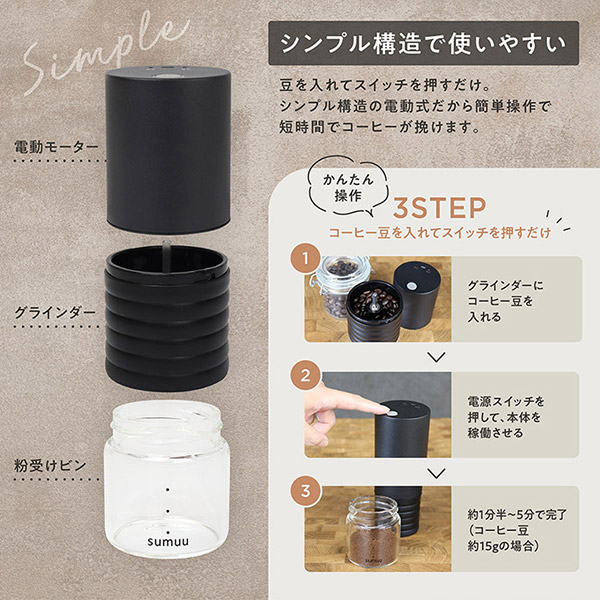 sumuu スムウ USB充電式電動コーヒーミル ラミル ブラック MCR-MCK-140BK