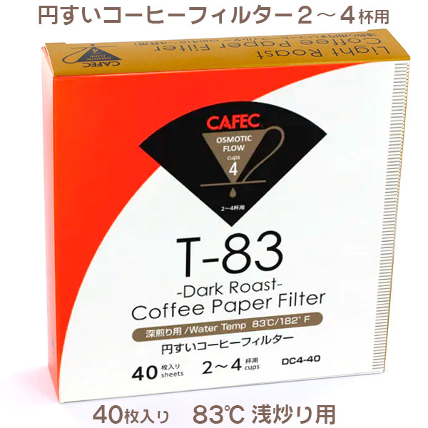 三洋 CAFEC 円すい 深煎り用T83 コーヒーフィルター 2〜4杯用 40枚紙箱入 DC4-40 ホワイト