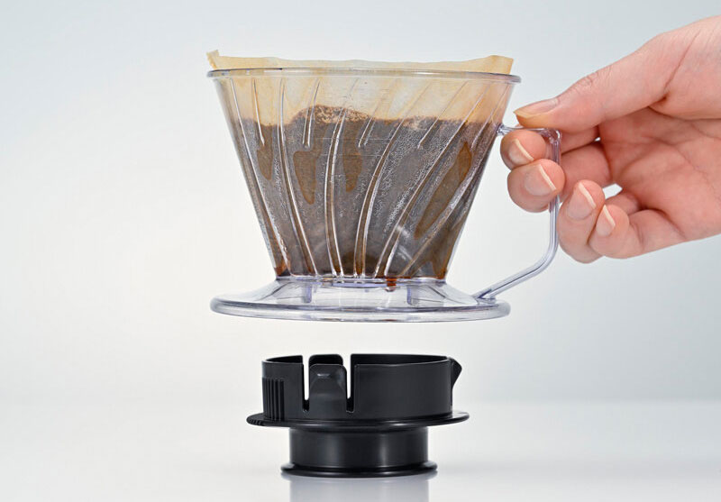 取り外ししやすいツマミフタ。フタは裏返すと簡易的なドリップトレイとして使えます。
