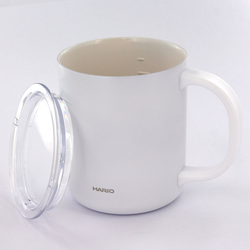 コーヒー本来の味を愉しむ、セラミックコーティングのハリオ保温マグカップです。 マグの内側にはセラミックコーティングを施しています。 ステンレス製特有の金属臭がしにくいため淹れたてのコーヒーのおいしさを長くお愉しみいただけます。 汚れがつきにくく、お手入れも簡単です。 本体はステンレス製真空断熱構造のため、おいしい温度をキープします。 V60ドリッパーをのせて、直接ドリップすることができます。