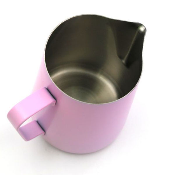 ラテアートが大好きなバリスタのよくあるリクエストは、12オンス(360ml)より大きく、 20オンス(600ml)より小さい容量のピッチャーが欲しいということでした。 その市場の要望に耳を傾けて誕生したのが、この15オンス(450ml)サイズのカラーピッチャーです。