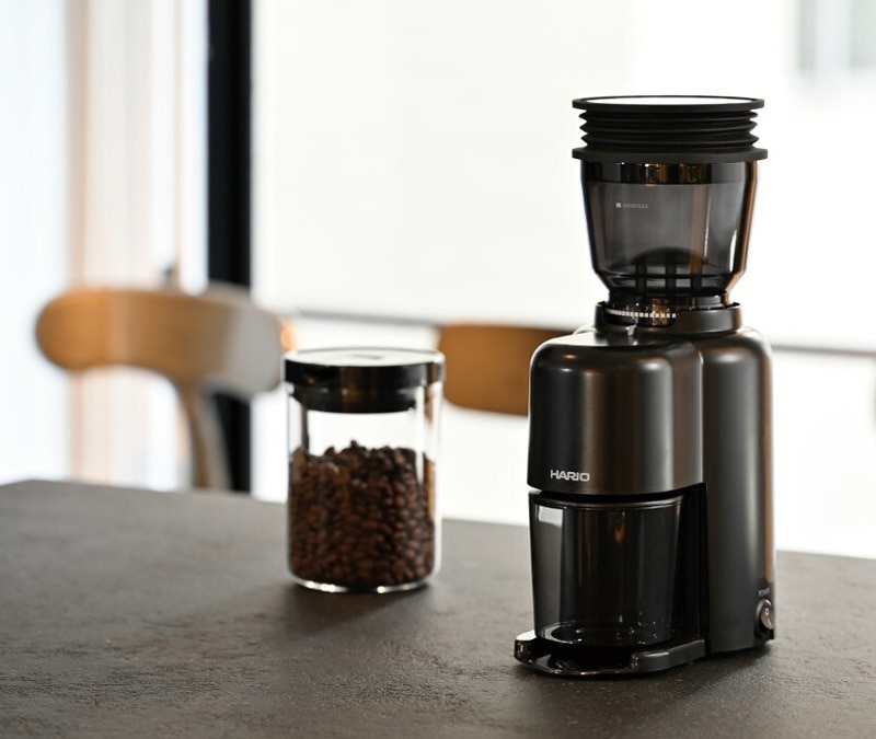 内部に静電気除去機能を搭載し、フタにはクリーナー機能が付いたハリオの電動コーヒーグラインダーです。