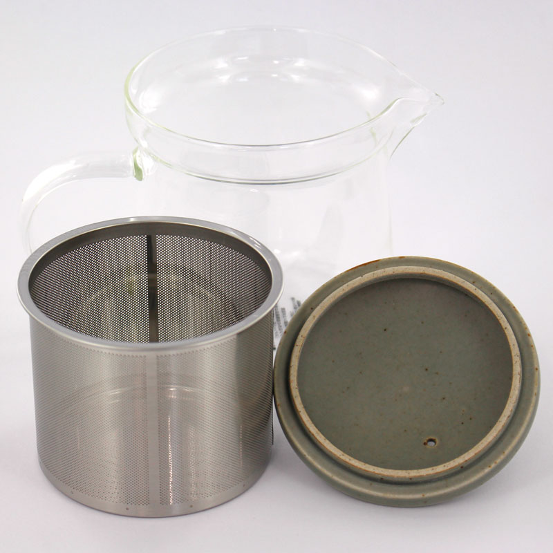 本体は耐熱ガラス製で茶葉の抽出がよく見えます。 ステンレス茶こしのアミが細かく、どんな茶葉にも対応します。 磁器製の蓋で食卓になじみます。