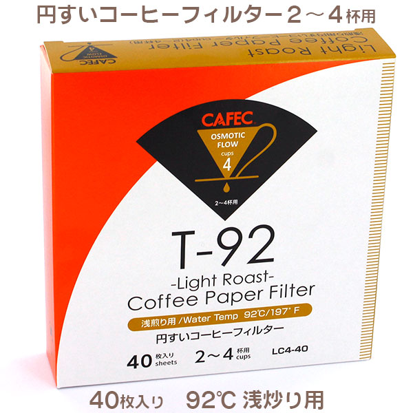 三洋 CAFEC 円すい 浅煎り用T92 コーヒーフィルター 2〜4杯用 40枚紙箱入 LC4-40 ホワイト