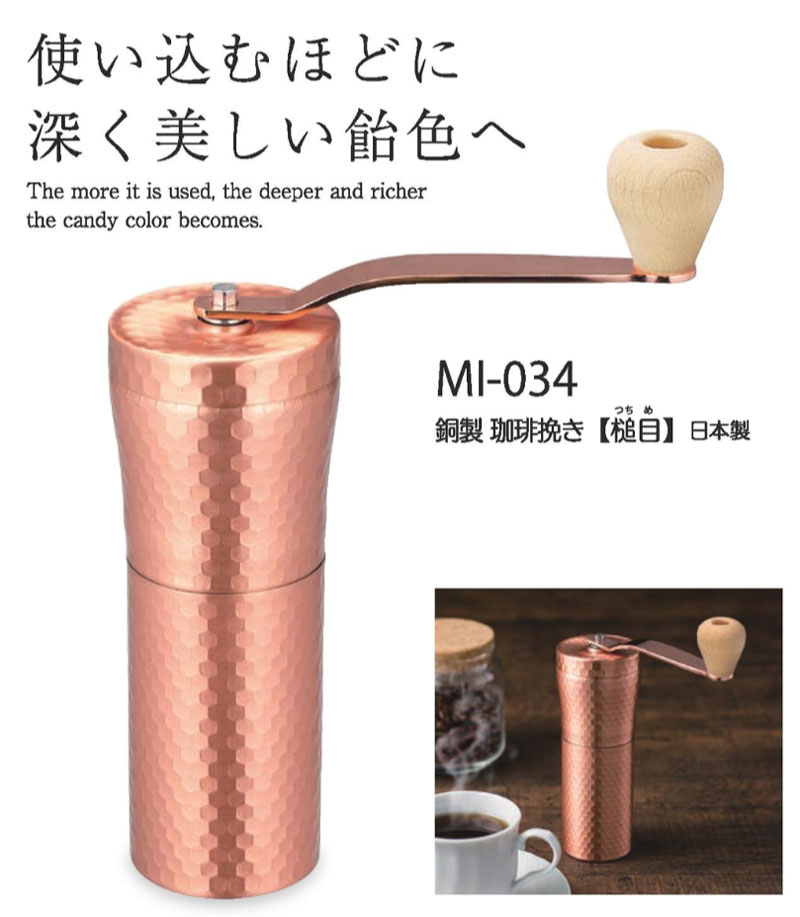 銅製 珈琲挽き 【槌目】つちめ MI-034 セラミック刃 コーヒーミル 日本製 川崎株式会社