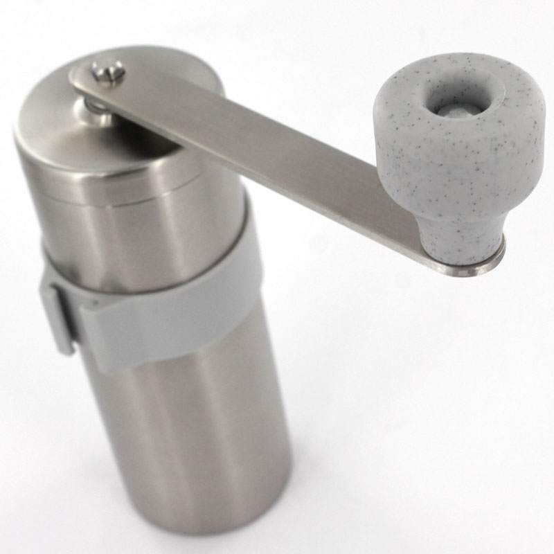 コーヒー豆を挽く際にしっかりと力が入る「滑り止めグリップ」を装備しました。 滑り止めグリップにはハンドルが収納できます。