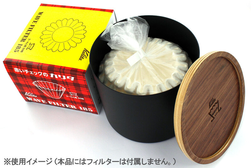 スチール製のウェーブフィルターを収納するケースです。 木製のフタにはシリコン等のパッキンは付いていないので片手で開けられます。 本品はカリタと山崎実業の収納シリーズ「RIN」とのコラボ商品になります。