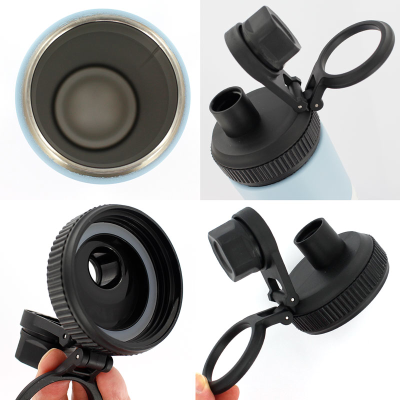 すぐに飲む事のできる直飲みタイプの保冷専用ステンレスボトルです。 スクリュー式のフタはアームが付いているので落ちたり無くしたりしません。 持ち運びに便利なハンドル付き。車のカップホルダーに入るスリムな形状。 本体表面の塗料に粒状を練りこみ、表面にあえて凹凸をつけ、濡れた手で持っても滑りにくい様になっています。