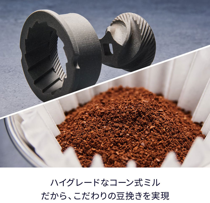 ◆ハイグレードなコーン式ミルを採用。こだわりの豆挽きを実現
