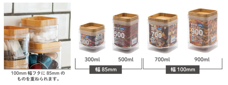 bitte ビッテ 重なるキャニスター バンブースクエア 300ml スタッキング キャニスター バンブー スクエア 85mm
